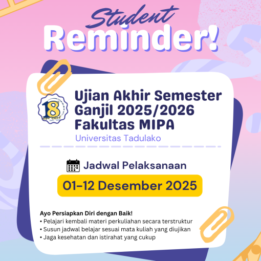 Fakultas Matematika dan Ilmu Pengetahuan Alam Universitas Tadulako mengumumkan bahwa […]