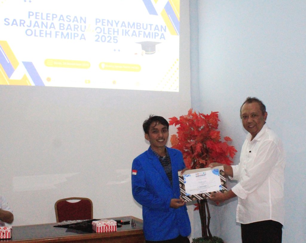 Kegiatan tersebut secara resmi dibuka oleh Dekan FMIPA, Prof. Dr. Lufsyi Mahmudin, S.Si., M.Si. Dalam sambutannya, beliau menegaskan bahwa bekal kompetensi akademik dan nonakademik yang telah diperoleh selama masa studi menjadi fondasi penting bagi para lulusan untuk bersaing di dunia kerja maupun arena profesional yang lebih luas.“Dengan ilmu dan keterampilan yang telah ditempa selama di FMIPA, kami yakin para sarjana mampu berkompetisi dengan lulusan dari perguruan tinggi manapun. Kami bangga atas keberhasilan saudara menyelesaikan studi. Selamat atas capaian ini,” ujar beliau.