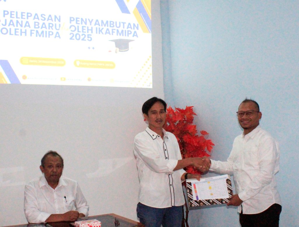 Senin, 24 November 202 – Fakultas Matematika dan Ilmu Pengetahuan Alam Universitas Tadulako melaksanakan kegiatan Pelepasan Sarjana Baru yang dirangkaikan dengan Penyambutan Alumni oleh IKAFMIPA 2025. Acara tersebut berlangsung di Ruang Senat FMIPA dan dihadiri oleh pimpinan fakultas, ketua IKAFMIPA, para ketua jurusan, dan ketua program studi serta para wisudawan dan wisudawati Angkatan 133.
